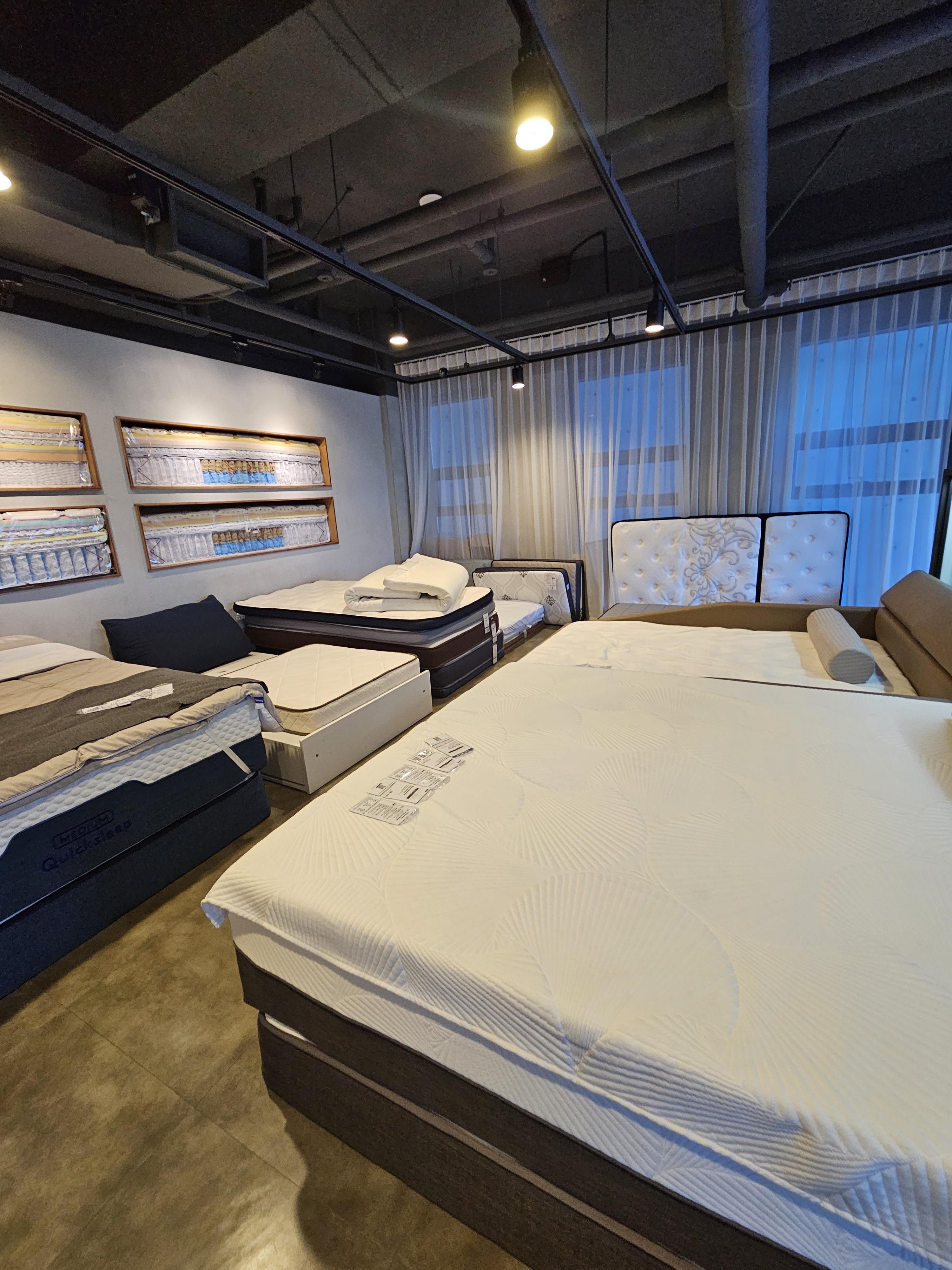 매트리스 높이, 크기, 쿠션감도 제각각 매장에 많이 비치되어 있어서