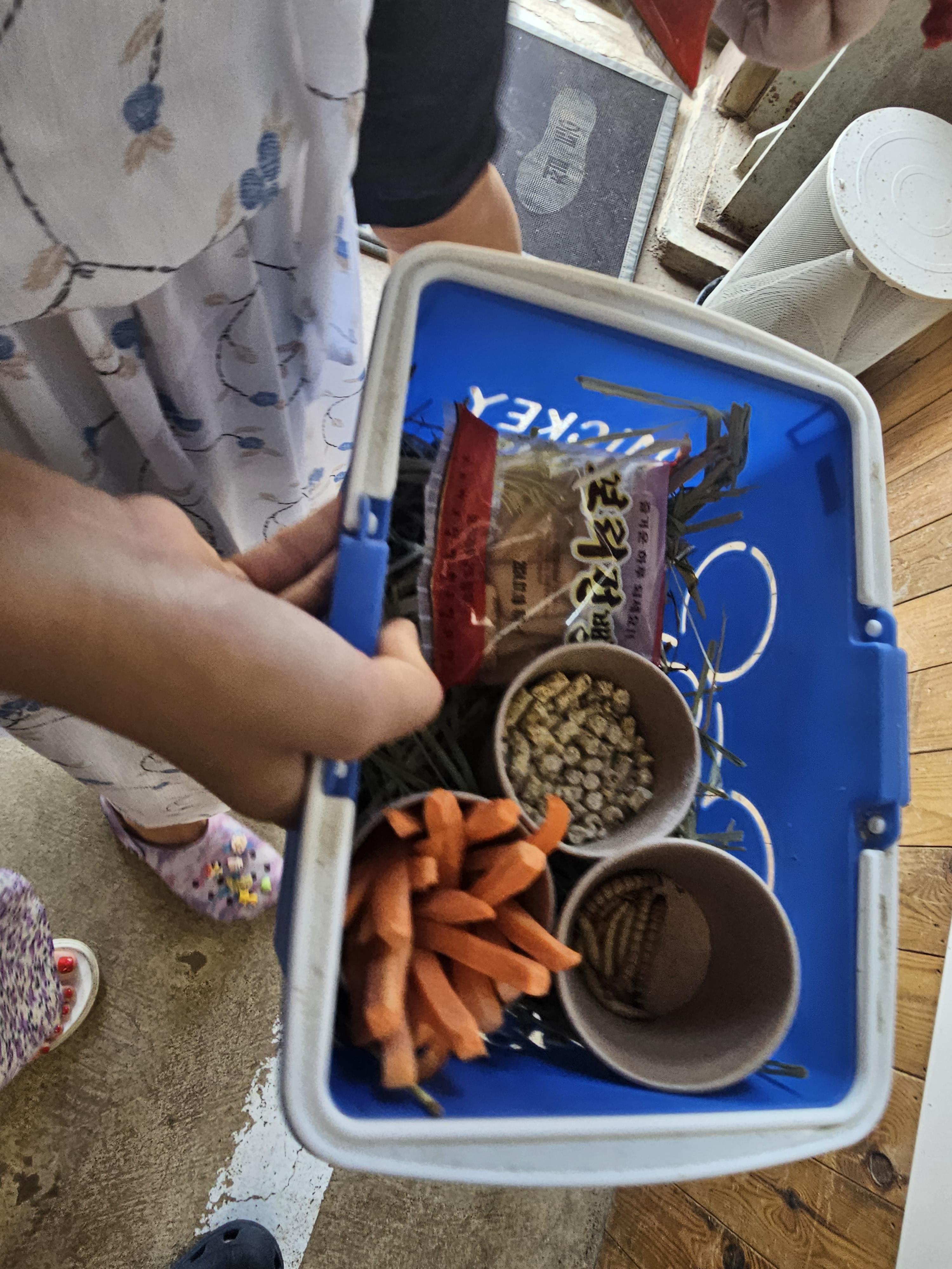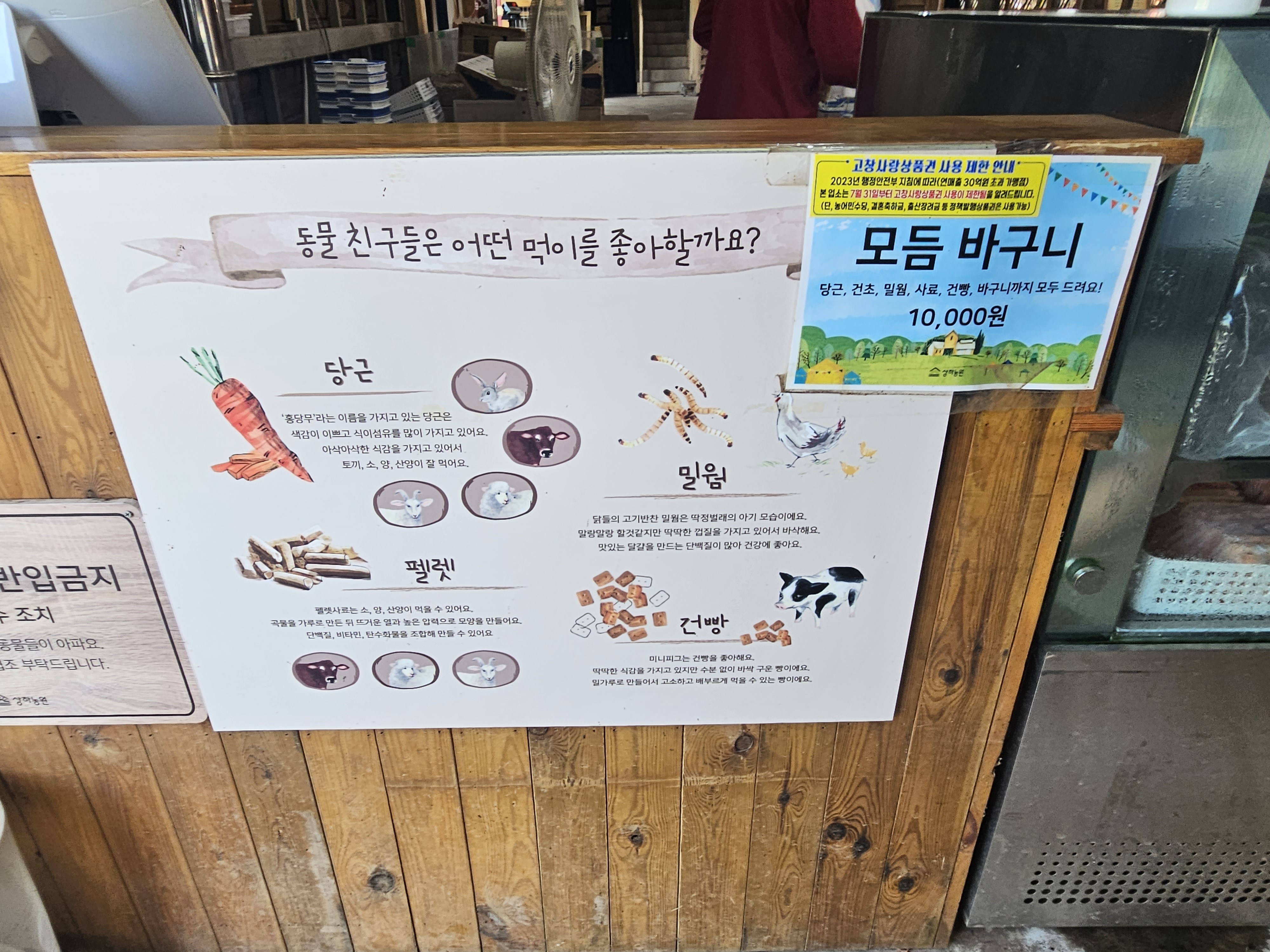 동물 먹이체험장에 가서 모둠바구니 구매했어요