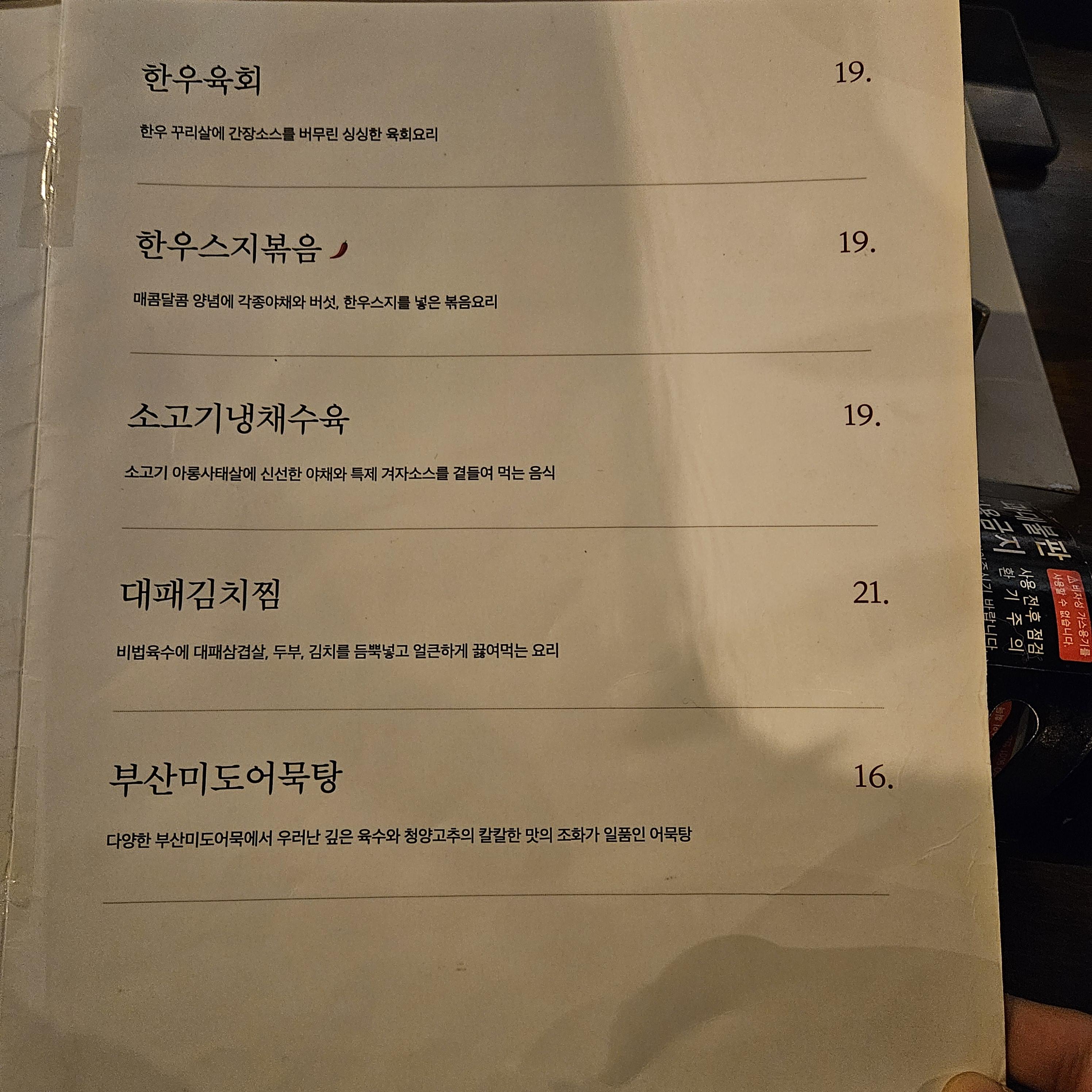 그 외에도 골뱅이무침, 육전 등등 다양한 한식 메뉴가 있네요