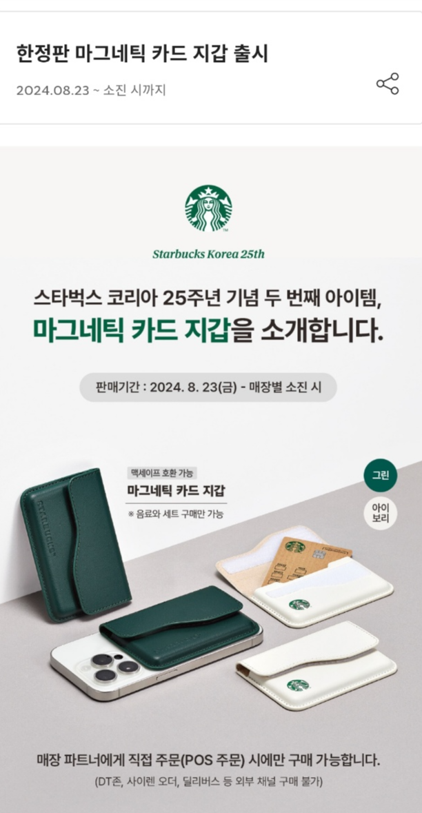 스타벅스 마그네틱 카드지갑 한정판매