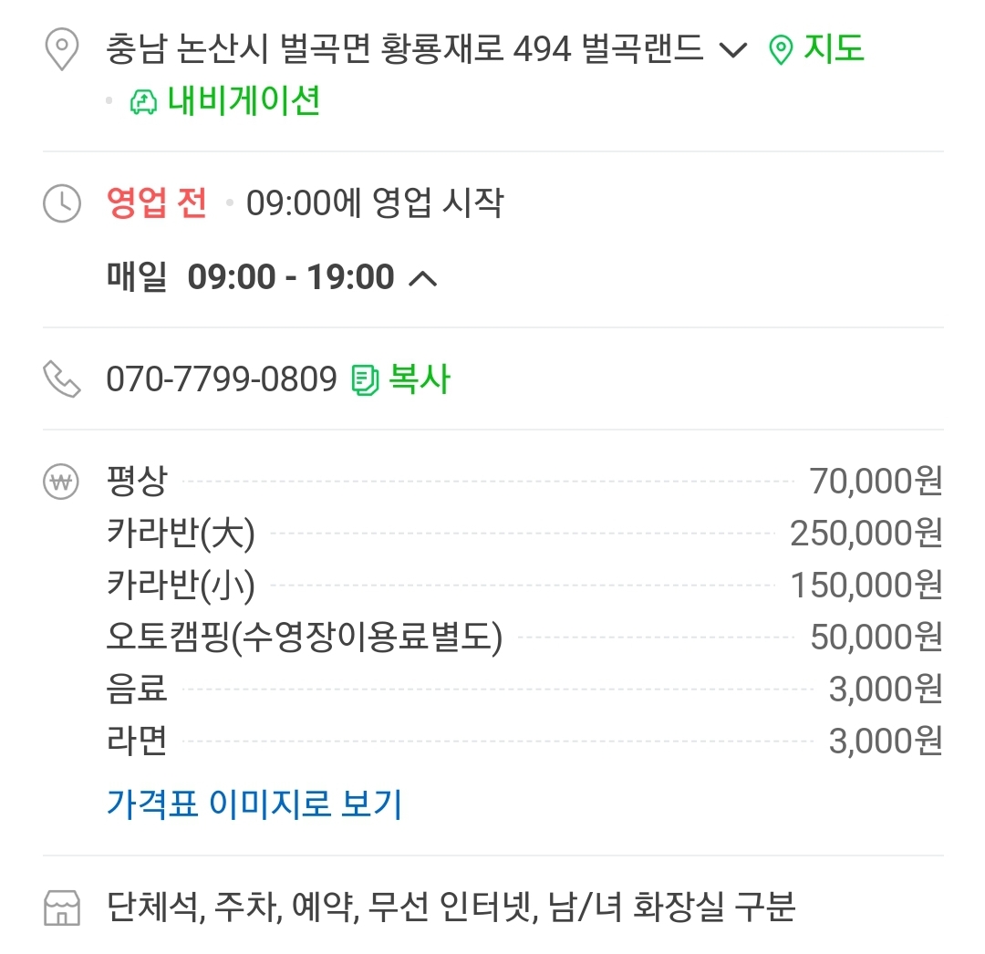 평상 대여비는 5인기준 7만원